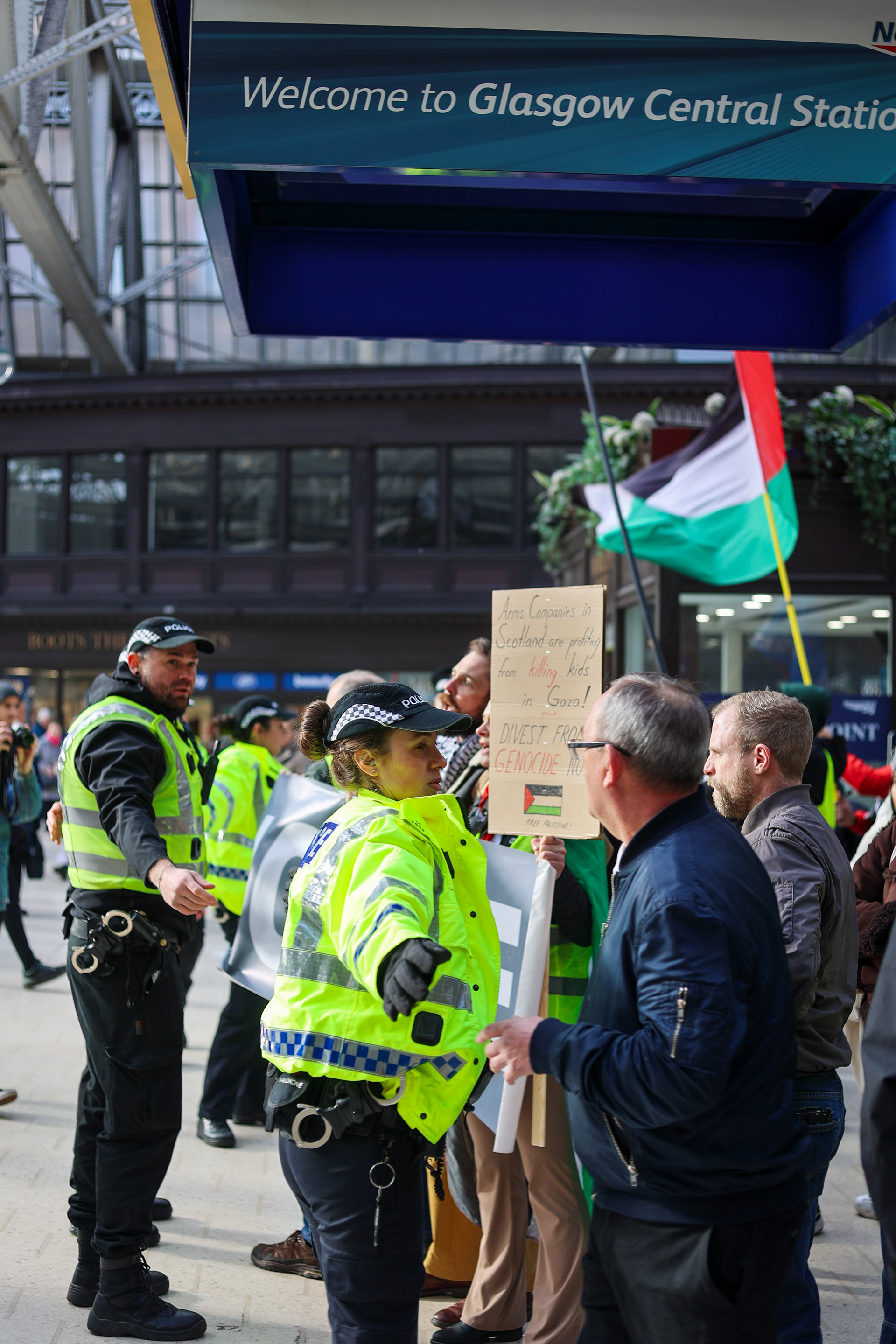 As the occupation forces close in on Rafah, as Gazans who survive the bombardment and snipers are killed by the man made famine, our elected officials host arms dealers complicit in this genocide. How can our government call for a ceasefire, but continue to welcome these war profiteers onto our soil? Once again a detour via Central Station says: no business as usual as genocide happens. As the situation faced in Palestine gets worse by the day, Glasgow shows no complacency in our opposition.